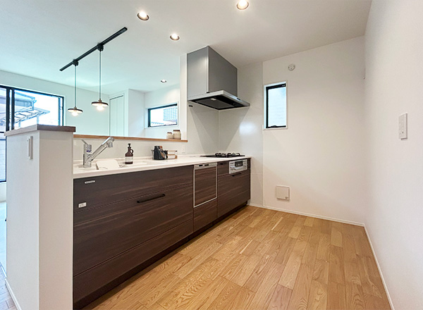 キッチンは対面式で、LDK全体を見渡せるのでお子様の様子を見ながらの家事も出来ます。
