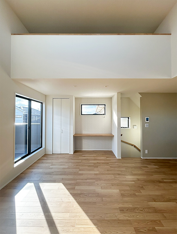 LDK上部は吹き抜けとなっており、開放感があります。