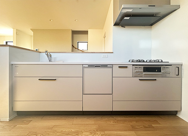 タカラスタンダードの3口コンロシステムキッチン。 食洗機付きで洗い物もラクラク♪