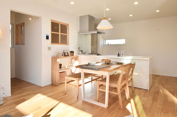 白い壁と相まって、光が心地よく広がる明るさと開放感を楽しめる空間です。