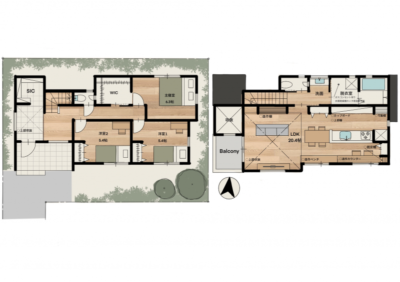 築年月 2026年5月築 間取り 3LDK (LDK20.4/洋室6.3/洋室5.4/洋室5.4)