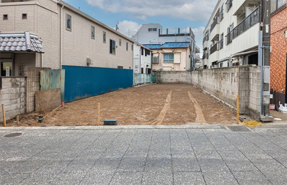 現在、ここに 新築建売住宅を建築中。