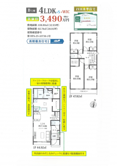 土地面積 | 108.88m² (公簿) (32.94坪) | 建物面積 | 92.74u |